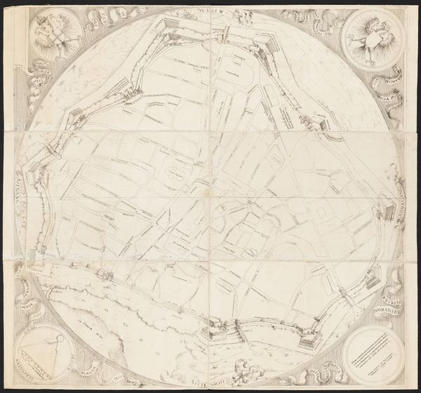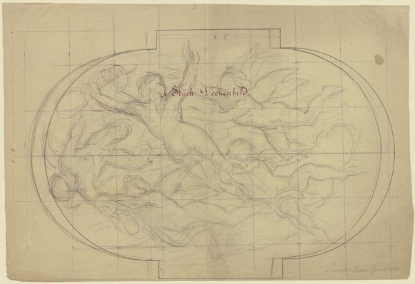 This delicate, undated drawing presents a symmetrical cartouche design, teeming with foliage, evoking classical grandeur. At its heart, we find figures reminiscent of putti, imbuing the scene with a playful, divine innocence. The cartouche, itself, is a fascinating motif—an ancient Egyptian emblem enclosing royal names, reborn in Renaissance Europe as an ornamental frame. The intertwined leaves and flourishes speak to nature's abundance, a common trope in art history that represents life, growth, and prosperity. These elements echo throughout time; from ancient Roman friezes to Baroque ceilings, the language of flora conveys status, and embodies the human desire to control and celebrate the natural world. Observe how the putti appear, like echoes of ancient cupids, suggesting a deeper, perhaps subconscious, yearning for an ideal past, a lost paradise. This drawing isn't merely a design; it's a vessel carrying centuries of artistic and cultural memory. The symbols may change, but our connection to them persists, resurfacing in new forms and contexts, in an ongoing dance between past and present.