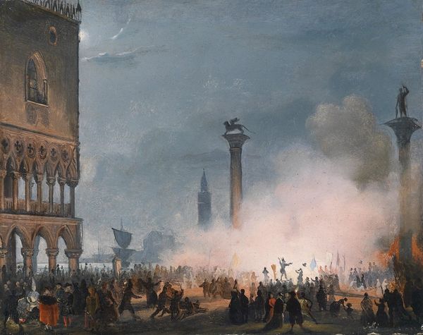 Dirk Langendijk created this watercolor drawing titled, *The Capture of a City by French Troops*. Dominating the scene, the imposing church looms amidst the chaos, its spire piercing the smoke-filled sky, symbolizing not just faith but also the resilience and vulnerability of civic identity in times of conflict. We see the church, a beacon of stability, juxtaposed with the surrounding destruction. The act of laying siege to a city is an ancient motif, echoing through history from the sieges depicted in Assyrian reliefs to the sack of cities in Renaissance paintings. Consider the burning city. This motif, a potent symbol of destruction and transformation, has roots stretching back to ancient tales of Troy, where fire represented both devastation and purification. The cyclical recurrence of such imagery taps into a collective memory, reminding us of the ever-present potential for societal collapse and renewal. The enduring presence of these motifs underscores their psychological impact, resonating with primal fears and hopes that transcend historical contexts.