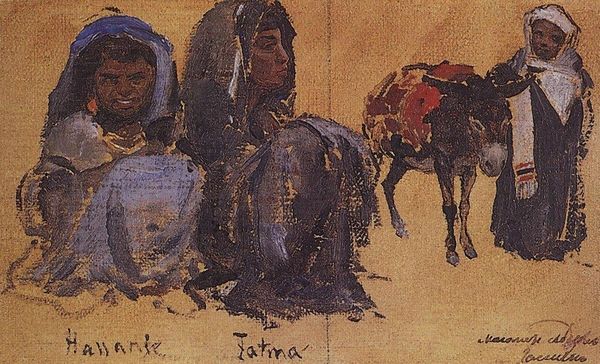 Curator: Zinaida Serebriakova’s "Arab on a Donkey," created in 1932, immediately strikes me as a work imbued with stillness and quiet dignity. What are your initial thoughts? Editor: The texture, first of all! Look at how she's rendered the fabrics, the fur, the animal's hide—the mark-making is so tangible. I’m immediately drawn to the material presence of it. Curator: Absolutely, and it's vital to consider the context: Serebriakova’s travels in North Africa opened her to new cultural encounters and portrait subjects outside the Russian aristocracy she was familiar with, engaging questions of race and representation. How might her perspective as a Russian émigré shape her depiction of this Arab subject? Editor: It’s interesting to think about her specific material constraints then. She relies on charcoal and pastel here; this implies an immediacy of materials, something readily accessible. I’d be curious to know if this choice of medium impacts her gaze, offering both opportunity and possibly setting limits to her portrayal of place and sitter. Curator: Definitely. The choice also softens potentially stark lines of colonial encounter, inviting more nuanced consideration of labor and travel across gender, race, and class in 1930s North Africa. Does this, to you, challenge traditional high art categorizations given her background? Editor: It absolutely complicates the issue. It challenges the very concept. The immediate impression created by the textured surface of this image makes you wonder about the modes of cultural consumption involved: how does the drawing surface itself bear witness to intercultural exchanges between the artist and sitter? Curator: Precisely. It is through close visual examination that we are pushed towards ethical discussions on art making itself. This invites us to consider if the portrait's power arises from Serebriakova's keen observations across differences. Editor: For me, looking closely at materials pushes these hard questions front and center—and encourages further conversations between process, making, and social significance. Curator: I concur; there's much to consider through both avenues in this instance. Thank you!