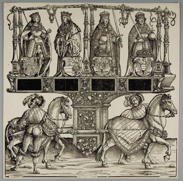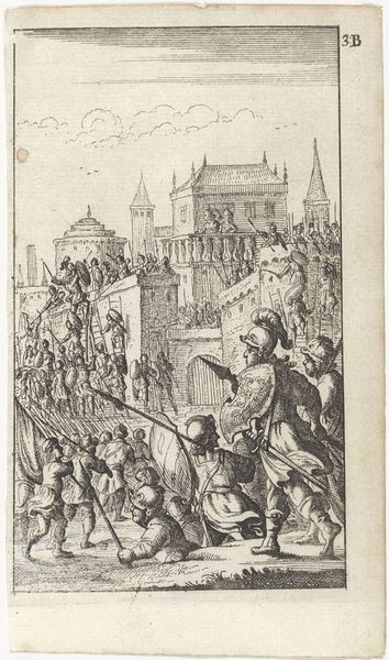 Editor: This is "The Arrival of Charles V in Paris, 28th May 1364" by Jean Fouquet, made around 1460 using tempera. It’s incredible how detailed everything is for such an old painting! The way the buildings crowd the horizon… what are your thoughts, looking at this? Curator: My eye immediately goes to the repetition of symbols: the fleur-de-lis on the king's robes, adorning the flags, echoing the power of the French monarchy. Observe how Fouquet uses gold leaf not just for ornamentation, but as a signifier of the sacred, elevating the event beyond mere historical record. Do you notice anything intriguing about how space is used to communicate meaning? Editor: I see how everyone's crammed together, as though depth isn't important...It feels almost staged, like a tapestry rather than a real place. Is that intentional? Curator: Precisely! Think of illuminated manuscripts: flattened perspective directs focus to symbols and narrative. It echoes how medieval audiences understood power, divinity, order – presented rather than realistically depicted. Notice also, beyond the grand procession, tiny figures on the city gate - are they biblical? Or historical figures that establish context and lend symbolic weight to the King's arrival? Editor: They could be biblical figures. It really does make the arrival of Charles V seem like some kind of sacred event. Almost...ordained. Curator: It reminds us that medieval art wasn’t just about representation, but about conveying profound cultural and psychological meanings, tapping into collective memory. The miniature details demand we look closer, meditate, and recall this chapter of history in relation to larger societal and even divine frameworks. Editor: It's fascinating how the imagery really underscores how history, power, and religious belief were intertwined! Curator: Yes, and by examining the symbolic vocabulary, we can more fully grasp the cultural landscape of 15th-century France.
