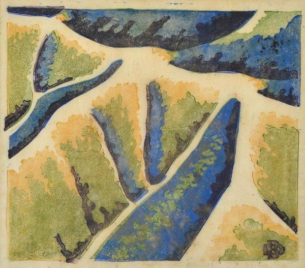 Editor: This intriguing artwork is called "Stehender Akt in Baum," or "Standing Nude in Tree," by Otto Mueller. It’s a pastel piece, seemingly on paper, and it just whispers "expressionism" to me with its raw, almost urgent lines. It feels like a glimpse into a hidden world. What catches your eye about this work? Curator: Ah, Otto. What I adore most is how he makes the human form not just *in* nature, but *of* it. The nude doesn’t strike me as vulnerable, more like a dryad, doesn’t it? Part of the foliage, its essence, sharing a secret language of branches and sunlight. Do you see how the colors bleed into each other, figure and landscape united by strokes of yearning? Editor: Definitely, that blending is powerful. I guess I had expected a starker contrast between the figure and the background. It almost makes the figure less of an individual and more a part of the tree. Curator: Exactly! Think of those Expressionist roots, digging deep into feeling and subjectivity. Otto's palette here sings a hushed, intimate song. He wasn't about precise depictions, rather an echoing of inner states, don’t you think? A communion, almost pagan, of body and earth? Editor: It's less a painting *of* a nude and more a feeling *about* a nude, maybe? So the pastel feels very intuitive... like capturing something fleeting. Curator: Fleeting, yes, like a breath held in the forest. And pastel offers that immediate, velvety texture, perfect for hinting at skin, sunlight filtering through leaves. Does it spark any thoughts about our relationship with nature? Our primal connections? Editor: It makes me wonder what that connection means. Thanks. I initially saw it as an interesting piece; now it feels much more thought-provoking and resonant. Curator: Doesn’t it just! And now I’m itching for a walk in the woods myself, a little less clothed perhaps!