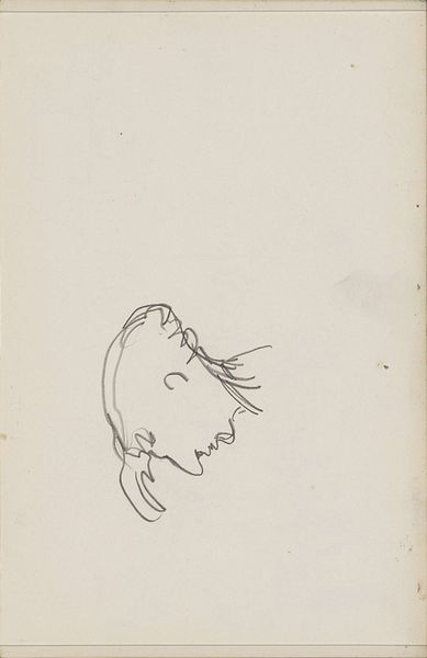 Curator: Well, here we have a fascinating study rendered in pencil, attributed to Cornelis Vreedenburgh and thought to have been created sometime between 1890 and 1946. Editor: It has a strangely isolated feel to it, almost minimalist. A small, dark cluster of lines adrift on a very large, pale field. There's a pronounced imbalance. Curator: Indeed. Consider the starkness of the composition, though. Vreedenburgh presents us with an almost abstract interplay of form. The delicate hatching creates a compelling contrast against the paper's void. Editor: True, but context is critical. Without knowing the exact year it was produced within that rather broad range, it’s challenging to fully understand what Vreedenburgh might have been grappling with socially and artistically. It looks almost like a doodle, doesn't it? Was it a preparatory sketch or a finished, independent work? The intention shapes our interpretation significantly. Curator: Its formal incompleteness begs the question, doesn’t it? What is the artist attempting to represent here? A suggestion of shape and volume only gestured to with a minimal of markings. The line work itself becomes the object of study, its delicate variation revealing so much of the artist's process. Editor: But to whom was this "study" intended for? Vreedenburgh wasn't exactly a household name. How might the evolving marketplace, the accessibility of artistic training, the prevailing attitudes of museums towards unfinished work at the turn of the century play into the understanding of a sketch like this? The sketch is held within a notebook page - we lose the wider visual narrative when displayed alone. Curator: I submit that the lack of contextual information enables us to engage more fully with its formal elements! Stripped bare, we are forced to look intently at the qualities of line, tone, and their combined effect, free from predetermined narratives. The beauty resides in its ambiguity. Editor: And the meaning lies within the historical discourse framing it, wouldn't you say? Regardless, the suggestive nature of the form certainly draws me in. It makes me want to understand not only the work of Vreedenburgh but the culture from which it emerged. Curator: I am taken, instead, by its purity of expression and the efficiency with which Vreedenburgh has captured his fleeting observation. Editor: Both are important facets, truly!