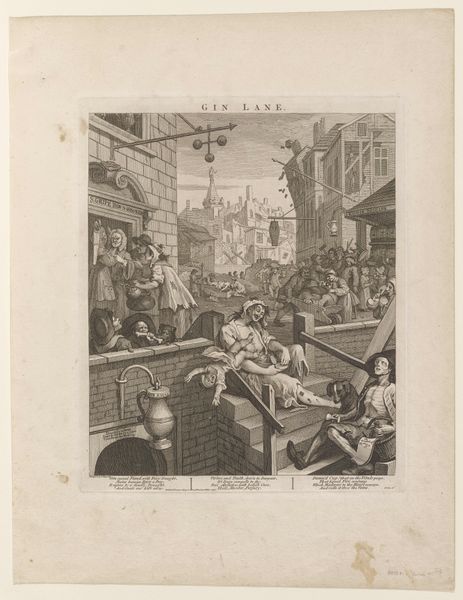 William Hogarth created this print, "Gin Lane," to be a stark commentary on the early 18th-century London gin craze. It’s a harrowing scene that dives deep into the underbelly of society, a place where cheap liquor fuels desperation. Hogarth doesn't shy away from showing us the extreme effects of gin consumption. Look at the figures—mothers neglecting their children, people collapsing into decay. There's a sense of utter hopelessness. He’s asking us to confront the social ills and moral decay of his time. This work can be viewed as a moral lesson about the dangers of addiction, but I also see it as a snapshot of a society grappling with poverty, inequality, and the commodification of escape. The emotional weight of "Gin Lane" lies in its unflinching depiction of human suffering, reminding us of the costs of indifference and the urgent need for social reform.