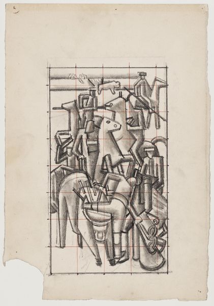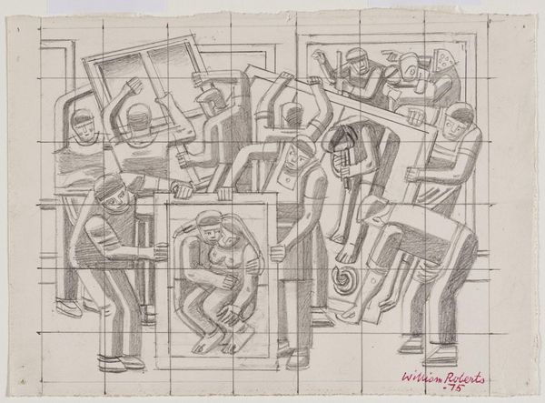 Editor: This is "Arab Feast," a pencil drawing by William Roberts, currently residing at the Tate. The figures are so stylized, almost geometric, yet they convey such a sense of energy. What do you make of this scene? Curator: The title immediately raises questions of representation and orientalism. Roberts, as a white European male, is depicting an "Arab Feast." We must consider his position of power and the potential for misrepresentation or exoticization. What specific elements in the composition reinforce, or perhaps challenge, stereotypical views? Editor: I see. The figures do seem generic, almost like symbols. Does that lack of specificity contribute to a sense of othering? Curator: Precisely. And notice the circular arrangement. Is it inclusive or does it create a sense of them being observed, contained, a spectacle for the Western gaze? We have to question whose perspective is centered here. Editor: It's fascinating how much a simple sketch can reveal about cultural power dynamics. I’ll definitely view this with a more critical eye now.