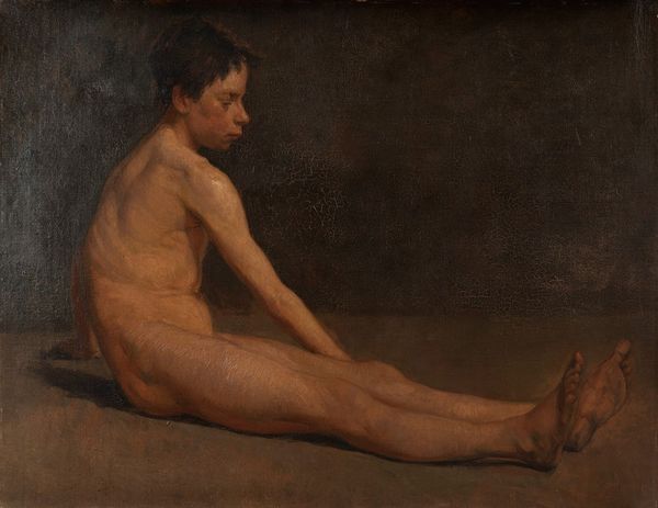 Here we see Mariano Fortuny Marsal’s painted ‘Self-portrait’. The canvas shows a nude male figure seated, rendered in a palette of warm browns and muted reds against a dark, ambiguous background. The body is softly illuminated, accentuating its curves and bony structure. Fortuny’s use of light and shadow creates a palpable tension between the figure's physicality and his psychological presence. The subject turns away, inviting questions about his internal state. How does the artist grapple with ideas of mortality, self-awareness, and the gaze? What do these elements of composition tell us? Ultimately, the interplay between form and content prompts ongoing dialogues, inviting us to consider the complex relationship between artist, subject, and viewer.