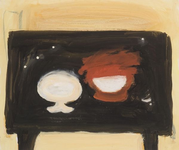Eugene Brands made this painting, "De fruitschaal", with paint, at some point in the 20th century. Isn't it interesting how a simple subject, like a bowl of fruit, becomes a playground for colour and form? The paint is applied with a kind of urgent simplicity, those bold strokes defining the bowl's edge, and the juicy reds and oranges of the fruit. Look closely, and you'll see how the colours aren't just sitting there; they're alive, bleeding into each other, creating this vibrant, almost vibrating energy. I love the little hints of blue and grey around the edges, like whispers adding depth to the conversation. It's like Brands is showing us the fruit not as objects, but as pure sensation, a burst of flavour on the canvas. This piece reminds me a little of Joan Miró's playful spirit, that sense of freedom and joy in mark-making. It's a reminder that art is not about perfection, but about the messy, beautiful process of seeing and feeling the world.