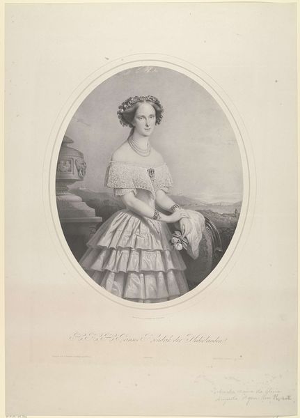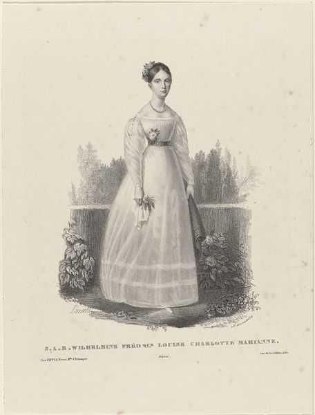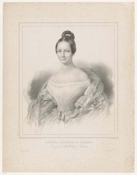Curator: Upon closer inspection, what strikes me first is this drawing’s tender and delicate quality. Editor: Absolutely, it almost whispers. Seeing this portrait, a graphite work titled *Portret van Marianne, prinses der Nederlanden* crafted around 1827 by P. Gillo, there’s this overwhelming sense of… wistful calm. The detail is startling for what’s essentially a pencil sketch. Curator: Yes, Gillo captured Princess Marianne in a style reflective of Romanticism, focusing on her serene beauty. It presents a curated vision, but one typical of royal portraiture intended to project power and virtue. We must remember who this was made for. Editor: Indeed, but it’s funny how the eye is still drawn to the intimate details that hint at her personality: that small gathering of roses near her hair, the subtle shading implying softness. The eyes seem… haunted? Almost daring to glimpse some truth behind all that stately obligation. Curator: What strikes me is the visual grammar it employs. Take, for instance, the soft light used to accentuate her face. It embodies the Romantic era’s tendency to idealize subjects, promoting beauty and moral integrity—necessary characteristics in projecting royalty. But it does more than this, it also projects power through lineage and dynastic connections with other European royal families. Editor: Precisely! But I get a sense that something personal flickers within these formal techniques. Pencil portraits always felt vulnerable and immediate in ways oil paints couldn’t. You sense the hand and time of the artist and sitter in such works. It reveals something about them. The shading alone suggests longing—or just melancholic reflection in between official sittings? Maybe, just maybe, her own self. Curator: That melancholic mood seems largely applied. Her posture, her gaze – all very deliberate for image control. It projects a softness, even when nobility rarely enjoyed softness. And as a curator, I wonder: does the image perpetuate or question the values upheld by her family and status at the time? This becomes a larger consideration with any portrait—then and now. Editor: Right. Still, stepping back – one imagines the soft scratch of pencil on paper as Gillo captures her essence under watchful eyes, striving to immortalize privilege on paper, something ephemeral but lasting all the same. Curator: A fine point to consider. Studying this, in the Rijksmuseum among so much other royal imagery, tells you not just about Princess Marianne but how notions of royal feminine influence were evolving as such. Editor: And I leave seeing more—her humanity caught within a carefully crafted piece—reminding myself how humans still make sense of themselves between identity, image, and the silent language between artist and the art itself.