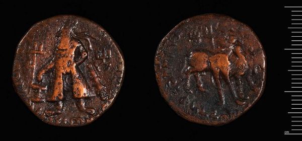 Editor: We're looking at a coin from Tarsus, minted under Caracalla. It's a humble little thing, but time has given it a beautiful, weathered texture. What untold stories do you think it holds? Curator: Oh, I love that question! I see a tangible link to an emperor, to a bustling city, to everyday commerce. Think of the hands this coin has passed through, each with its own narrative. It makes you wonder about their lives, doesn’t it? Editor: It really does. And the portraits, are they idealized or realistic, do you think? Curator: Probably a bit of both. The emperor wanted to project power, but the artist also captured something of his essence. It's like a fleeting whisper of the past, preserved in metal. I find that so very moving. Editor: Yeah! It's like a portal. Curator: Exactly!