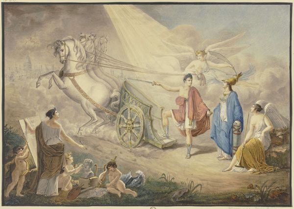 Alphonse Mucha made this study for a mural with watercolor and pencil, and it presents a symphony of soft pastel hues dominated by creamy yellows and gentle blues, evoking a dreamlike, ethereal quality. The composition is structured around a boat carrying allegorical figures, its prow adorned with the motto "Fluctuat nec mergitur." Mucha employs the principles of Art Nouveau. We see this in the elegant, curvilinear forms and the decorative use of line. The figures themselves, with their flowing garments, embody an idealized representation of femininity. The muted color palette softens the forms and adds to the overall sense of harmony. However, the composition disrupts traditional perspective through its flattening of space and the lack of a distinct foreground or background. This invites us to consider the work not as a representation of reality but as a constructed image, emphasizing the surface and the interplay of forms and colors. This calculated arrangement challenges viewers to interpret the symbols and their arrangement, destabilizing any fixed meaning and allowing for multiple interpretations.