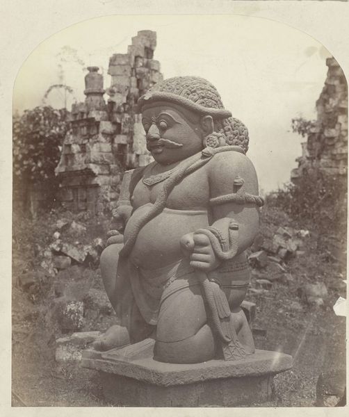 Isidore Kinsbergen captured this photograph of a 14th-15th century Naga head from a residential house in Kediri, East Java. The Naga, a mythical serpent, holds a prominent place in Southeast Asian cosmology, embodying power, protection, and connection to the earth. Kinsbergen, a photographer working in the Dutch East Indies, documented architectural and cultural artifacts, often reflecting the colonial gaze of the era. Consider the emotional weight carried by this object. Originally a guardian of a home, it is now captured as a solitary object, stripped of its original context. What does it mean to extract such culturally significant items and re-present them through a colonial lens? This Naga head serves as a potent reminder of the complex interplay between cultural preservation, colonial practices, and the enduring power of symbols.