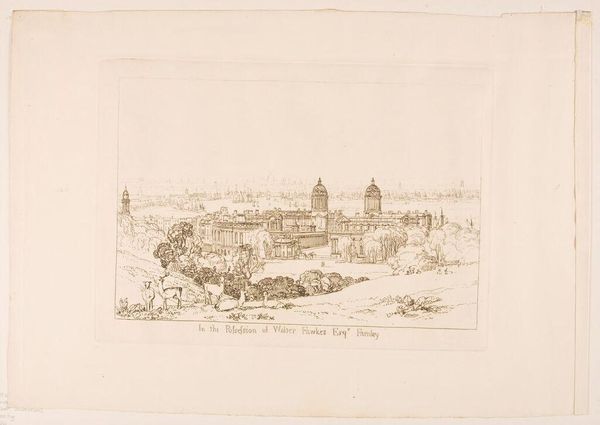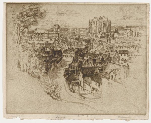 Curator: Let's discuss Maxime Lalanne's "View of the Louvre." Editor: Immediately, there's something so dreamy and nostalgic about it. It's like a memory, softened at the edges. Curator: Absolutely. Lalanne was a master etcher, and this work shows his skill at capturing the atmosphere of Paris. Notice how the bridges and buildings are rendered with such delicate detail. Editor: The river seems so alive! And all of those little marks create such a vibrant impression of the city. I wonder what it felt like to stand there. Curator: In his time, Lalanne’s prints were highly sought after. His technique provided a means of distributing views of Paris to a wider audience during the rise of tourism. Editor: It's amazing how a simple etching can contain so much. Curator: Indeed. It offers us a glimpse into a specific time and place through the eyes of someone who clearly loved the city. Editor: And lets us dream about it, too.
