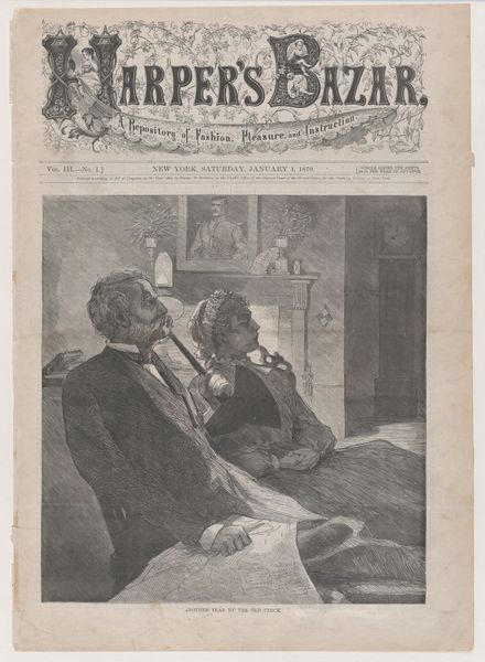 Curator: Jean-Louis Forain’s 1898 graphite and pen drawing, "Caricature of Edmond de Rothschild returning from dinner", captures a moment thick with societal tension. What strikes you first about it? Editor: The claustrophobia of the scene, immediately. The man in the heavy coat looming over the figure in bed, the heavy drapes, the tight composition—it all feels airless, weighted down. Curator: The 'airless' feeling resonates when you consider the historical context. It appeared in "Psst...!", an anti-Dreyfusard satirical magazine. Rothschild, a prominent Jewish banker, is depicted after presumably attending a dinner. His companion’s line roughly translates to "Charming! No one dared to mention the Dreyfus Affair". Editor: That explains the bedridden figure’s expression – it reads to me as somewhere between relief and lingering anxiety. The averted gaze, the almost defensive posture, suggests someone who's had to swallow unpleasantness. This captures the weight of unspoken, charged conversation. Curator: Precisely. Forain uses caricature not just for humor, but as a vehicle for social critique. The Rothschild figure, burdened by wealth represented by the cane and hat, is contrasted with the other's vulnerability to embody the awkward tension surrounding Dreyfus. Forain taps into cultural anxieties regarding power, anti-Semitism and social pressure. Editor: Symbolically, the bed itself—a place of rest, vulnerability—becomes a site of forced silence, highlighting how deeply the Dreyfus Affair had permeated every aspect of life, even intimate spaces. The room almost reads as a confessional with unspoken secrets. Even the publication’s name is meaningful. "Psst…!" sounds like it carries secrets, conspiratorial tones. Curator: The 'Psst...!' title amplifies this undercurrent. In his work we see commentary on performative politeness against genuine belief. This specific cartoon became incredibly effective because it was less of an accusation but an observant eye. It highlights silence as violence or, perhaps worse, implicit endorsement. Editor: It really speaks to the lasting power of visual shorthand – how a few lines can evoke such a potent sense of unease and cultural turmoil. Curator: Agreed, seeing it with these nuances provides quite a lens for reconsidering our contemporary political discourse too.