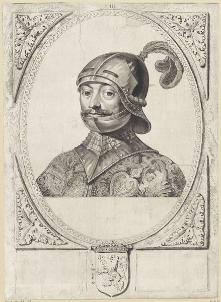Cornelis Visscher created this portrait of Charles V using etching and engraving techniques. These processes involve working on a metal plate, using acid to bite lines into the surface, and then transferring the image to paper. Look closely, and you’ll notice the stark contrast between the dark lines and the white paper, a product of the way the ink sits on the surface. The image’s fine details, like the fur trim and intricate chain, demonstrate Visscher’s skill. His expertise highlights the luxury and status associated with Charles V, but also the degree of labor required to create this print. In Visscher's time, printmaking was becoming increasingly important in disseminating images and ideas. The rise of print culture was closely tied to the development of capitalism, allowing for mass production and consumption of images. This portrait reminds us that even seemingly straightforward artworks are embedded in broader economic and social systems, influencing how we understand both art and the world around us.