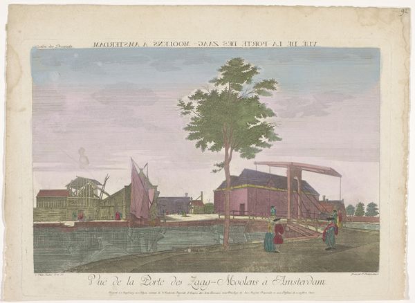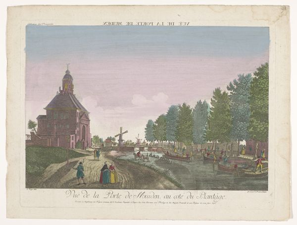 This print, "Gezicht op de Leidsepoort te Amsterdam," was made by the Kaiserlich Franziskische Akademie. Here, we see Amsterdam depicted through the formal, almost clinical lens of the late 18th century academy. This institution was dedicated to mapping the geography and architecture of the Austrian-Hungarian Empire and its allied territories. The image offers a picturesque view of the city gate, meticulously rendered with attention to detail, from the architecture to the dress of the figures strolling along the canal. The level of detail and precision suggests the influence of Enlightenment ideals, prioritizing empirical observation and rational understanding. However, this seemingly objective view is also carefully constructed, designed to promote the commercial and military power of the city. To understand the print fully, we would want to place it within the wider context of 18th-century European city views and consider the role of academies in shaping artistic production and visual culture. Such understanding depends upon sustained historical research, without which art remains mute.
