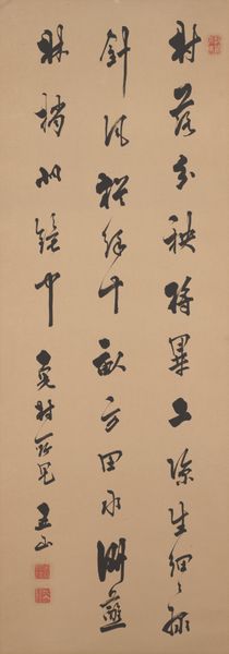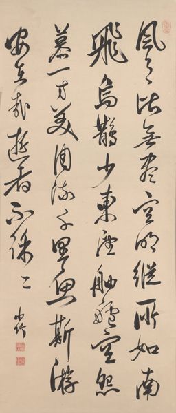 Gion Nankai created these calligraphic scrolls of Chinese poems in 18th century Japan, using ink on paper. Nankai was a Confucian scholar and artist and his work embodies the cultural exchange between China and Japan. Calligraphy, more than just writing, was considered a high art form in both countries, closely linked to painting and poetry. The ability to create beautiful characters with a brush was a sign of education and refinement, so these scrolls would have appealed to a sophisticated, intellectual audience. They reflect the influence of Chinese aesthetics and literature on Japanese culture during the Edo period, which was a time when Japanese artists and intellectuals looked to China for inspiration. To fully appreciate these poems, we can turn to historical texts, literary studies, and research into the social context of the Edo period. In doing so, we recognize that the meaning of art is tied to the cultural and institutional forces that shaped its creation and reception.