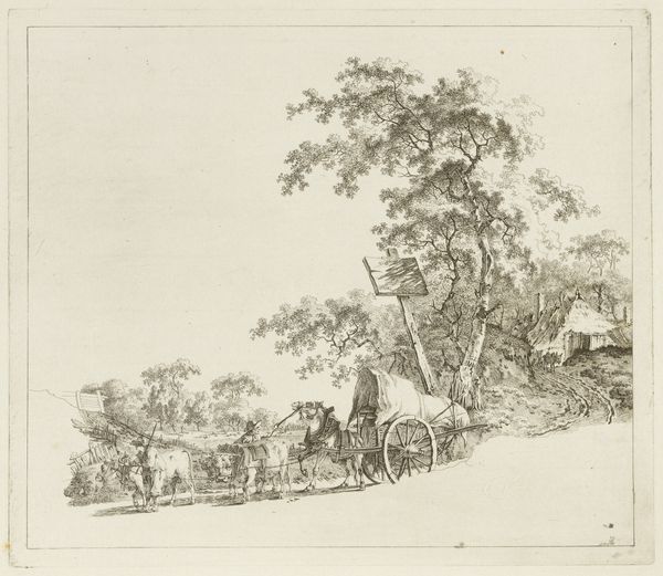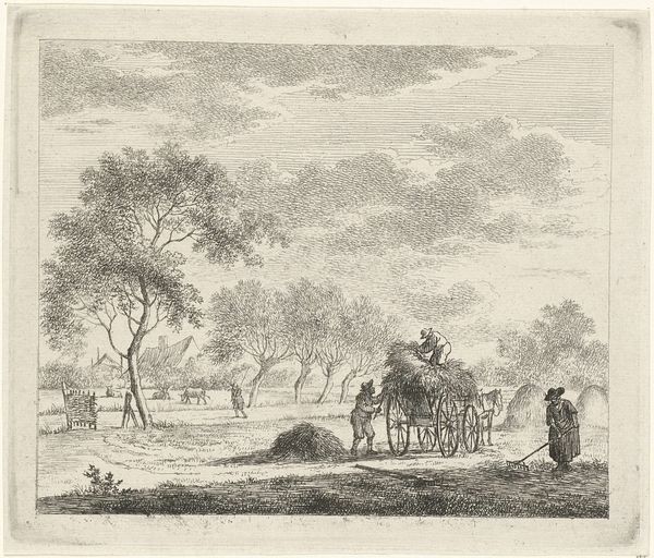 Johannes Janson created this etching, "Landscape with Farmhouse and Cows," in the Netherlands during the 18th century. It depicts a pastoral scene, with a farmhouse and cows being herded along a path. In 18th-century Dutch culture, landscape art served a crucial role in shaping national identity. By idealizing rural life, artists like Janson promoted a sense of stability. The attention to detail, such as the architecture and the depiction of livestock, creates meaning through visual codes and cultural references related to Dutch agriculture. To fully understand art, historians delve into archives, period writings, and institutional records to illuminate the social conditions that shaped artistic production. This etching, like many artworks, becomes more meaningful when we consider its connection to broader cultural and institutional contexts.