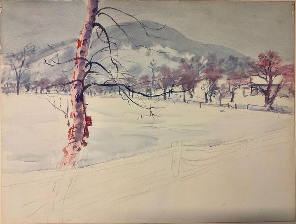 Alfred Freddy Krupa painted "Footprints in the snow, next to the new pier on the Kupa river" in 1994, using watercolor on paper. Here, the artist’s choice of watercolor becomes essential. Watercolor, with its fluid transparency, mirrors the transient nature of the winter scene, evoking the ephemeral quality of light reflecting on snow. Krupa’s technique here appears effortless, yet the subtle gradations of tone required precision. Each wash of color interacts with the paper, not to mention previous layers, creating depth and texture. The footprints, rendered with a delicate touch, suggest a fleeting human presence. The stark, muted palette emphasizes the stillness and quietude of the winter landscape. Ultimately, Krupa’s “Footprints in the snow” reminds us that even the simplest of materials, wielded with skill and sensitivity, can convey profound emotional and sensory experiences. It challenges us to look beyond the surface and appreciate the artistry inherent in the making.