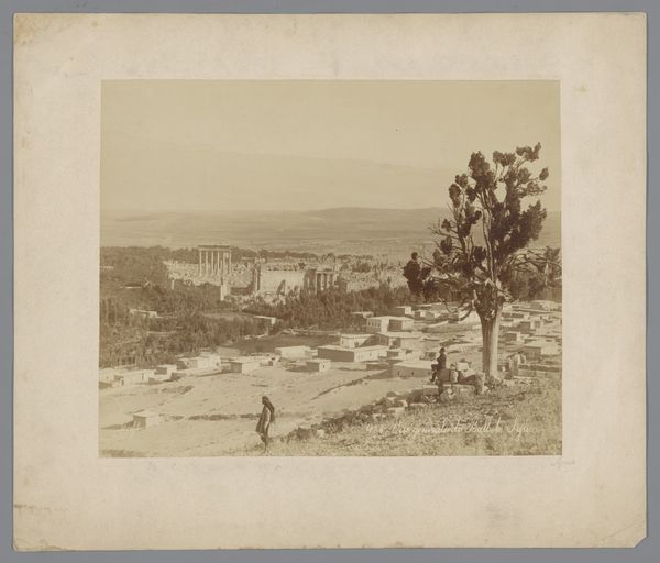 Giorgio Sommer made this albumen print of Agrigento from the Temple of Jupiter in Italy. Sommer's photograph creates meaning by contrasting the ruined grandeur of the ancient temple with the contemporary town in the background, likely made in the second half of the 19th century. Italy at that time was a popular destination for European tourists seeking the picturesque and historical. Sommer catered to this market by producing images that romanticized the Italian landscape. The photograph's composition, with the ruins in the foreground and the town in the distance, encourages viewers to reflect on the passage of time and the transience of human achievement. This image is both a record of a place and an artistic interpretation of it, designed to evoke feelings of nostalgia and awe. The social conditions that shaped this work include the rise of tourism and the commercialization of photography. To understand it better, one might research the history of photography in Italy, the cultural significance of Agrigento, and the role of tourism in shaping perceptions of the past. The meaning of this artwork is contingent on its social and institutional context.