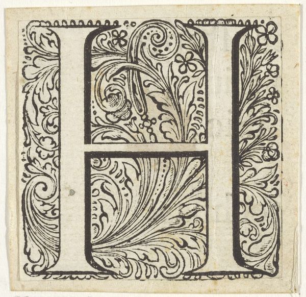 Editor: This is an engraving of the letter "I" in an ornate frame, dating back to the 17th century and created by an anonymous artist. It feels so formal and decorative. What stands out to you most about this piece? Curator: Well, I immediately consider the context in which this "I" would have existed. During the 17th century, typography was intrinsically linked to power and knowledge. The decorative nature isn't just aesthetic; it signifies the importance of literacy and access to information, something inherently tied to class and privilege. The swirls and botanical elements—where do you think those come from? Editor: Maybe from illuminated manuscripts, which I imagine were extremely expensive at the time? Curator: Precisely! And who commissioned those manuscripts? Powerful figures. So, in a way, this relatively simple print is echoing that history, democratizing it to an extent but also subtly reinforcing existing power structures. Consider how many people were denied access to literacy, and thus to the 'I', to identity and expression. Does the decoration itself become a sort of barrier? Editor: That’s a really interesting point. It's beautiful, but also a reminder of inequality. The "I" isn't just a letter; it represents something much bigger. Curator: Exactly. The very act of ornamentation transforms a simple letter into a loaded symbol. Understanding its function within its historical context allows us to unpack its social implications. What can art reveal about social disparities, both then and now? Editor: I never thought about a single letter holding so much weight! I’ll definitely look at typography differently from now on.