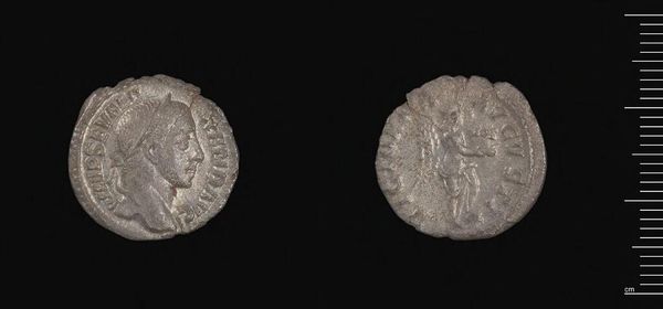 Editor: This is a Denarius of Julia Domna, wife of Septimius Severus. It's a small, silver coin, worn with age. What strikes me is how a single image on a coin could carry so much symbolic weight. What do you see in this piece? Curator: I see not just a portrait, but a carefully constructed persona. Coins like this were instruments of power, using Julia Domna's image to project stability and divine favor. Her hairstyle, the drape of her clothing—these weren't accidents, but carefully chosen symbols. Editor: So, it's about understanding the visual language of the Roman Empire? Curator: Precisely. The coin becomes a miniature stage for projecting imperial ideology. What do you make of the images' effect on the viewer? Editor: Now I see how a seemingly simple object tells a complex story. Thanks! Curator: Indeed. Each image whispers echoes of power, memory, and cultural identity.