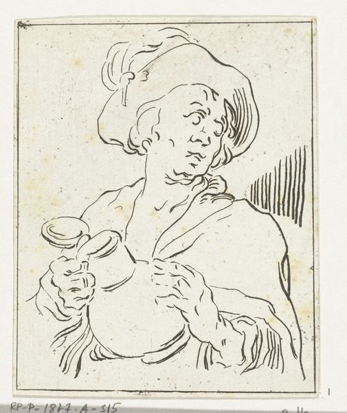Editor: Here we have Jan Verkolje's "Vioolspeler," made between 1660 and 1693, an engraving. There's a certain innocence to this young musician's expression, but something about the details in the feather and fabrics suggests more formal societal expectations too. How would you interpret this work? Curator: It's interesting that you pick up on that tension between innocence and formality. From a historical perspective, consider the Dutch Golden Age context. Genre paintings like this were becoming increasingly popular with the burgeoning middle class. What social message do you think images like this were intended to convey, and for whom? Editor: Hmm, maybe a sense of aspirational culture? That even a commoner could be cultured and enjoy music? Or perhaps it's just a display of the engraver's skill in rendering detail. Curator: Precisely! Both aspirations are very astute and closely linked to artistic representation. The rising middle class in the Dutch Golden Age wanted to see themselves reflected, and even ennobled, in art. Artists like Verkolje capitalized on that. Consider too, the rise of printmaking—suddenly art became much more accessible to a wider audience. Does knowing this change your view of the work at all? Editor: Yes, it does. It goes from a simple portrait to more of a cultural artifact reflecting complex social dynamics. Thanks for sharing that. I'm starting to understand how art is never really created in a vacuum. Curator: Exactly! And these societal considerations change how we engage with and contextualize these images within the history of art. This new perspective deepens the experience.