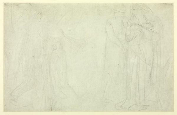 Curator: This drawing presents us with studies of two classical sculptures, the Ludovisi Muse and the Farnese Flora. Though the artist is unknown, the work is part of the Harvard Art Museums collection. Editor: The sketches feel so preliminary, almost ghostly. I’m drawn to the depiction of drapery and its textures, which looks incredibly complicated and skilled. Curator: Indeed, classical sculptures like these were often read allegorically, embodying virtues or aspects of civic life. It’s fascinating to consider how they operated within a larger visual language. Editor: Thinking about the labor—the artist spending time rendering these in painstaking detail. It makes me consider the value placed on classical forms and their reproduction in the 18th century. Curator: And how the understanding of gender and power dynamics informs our reception of these idealized female forms. What does it mean to endlessly recreate these images? Editor: It really highlights the craft involved, especially when we think about how these sketches were circulated as models for further artistic production. I see the seeds of reproduction already at work here. Curator: I'm left pondering the sculptures' enduring relevance. Editor: I'm thinking about how the labor involved in their creation remains largely invisible to us now.