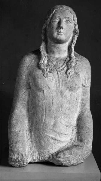 Editor: Here we have Svend Rathsack's 1921 wooden sculpture, "Coolie with his Load," currently at the Statens Museum for Kunst. The figure's stance seems oddly confident given the visible weight. What do you see in this piece beyond its obvious representation? Curator: It's impossible to view this piece outside of its historical context. The term "coolie" itself is loaded, referring to indentured laborers often exploited during colonial times. The sculpture's realism, the figure's seemingly proud stance, creates a tension. Does this portrayal challenge or perpetuate the power dynamics inherent in the colonial system? How might a contemporary audience from a formerly colonized nation react to this sculpture? Editor: So you’re saying that even a sculpture created with perhaps noble intentions may still inadvertently reinforce harmful stereotypes? Curator: Precisely. Art doesn’t exist in a vacuum. Even realism, which purports to show the world as it is, is always mediated through the artist's perspective and the prevailing ideologies of the time. We have to consider who gets to represent whom, and to what end. The materials matter, too - the wooden sculpture feels rough hewn, reminiscent of folk art but also suggesting perhaps a commentary of being rooted to the land by force. What are your thoughts on the gaze of the figure? Editor: The gaze is really intriguing. It’s almost defiant. I hadn't considered the gaze as an act of resistance. Thanks, that provides so much more to consider when assessing historical artwork. Curator: Exactly, interrogating art helps reveal and hopefully dismantle harmful systems.