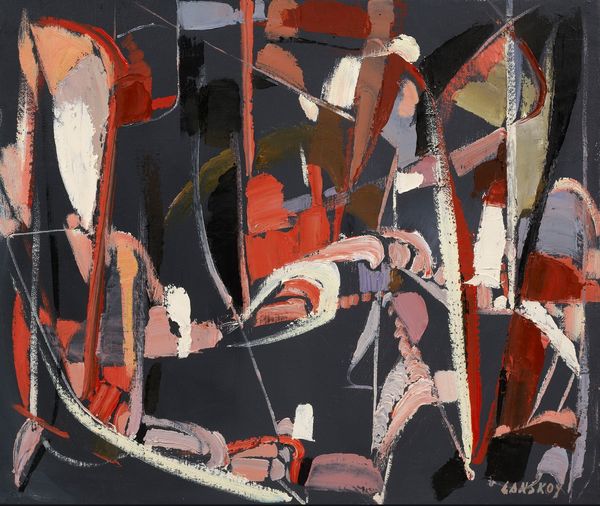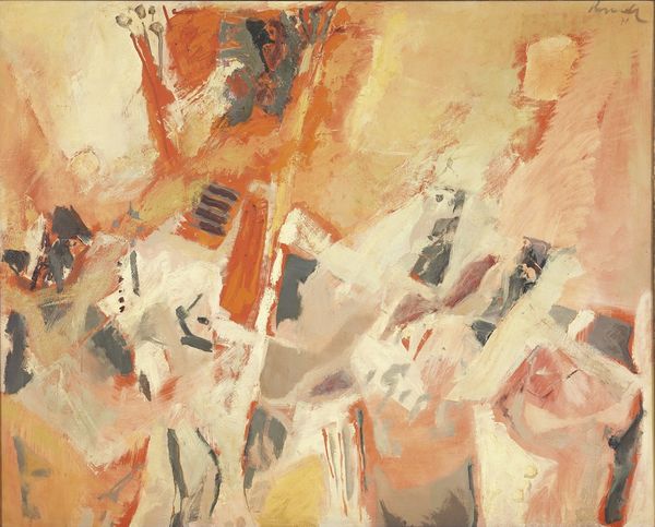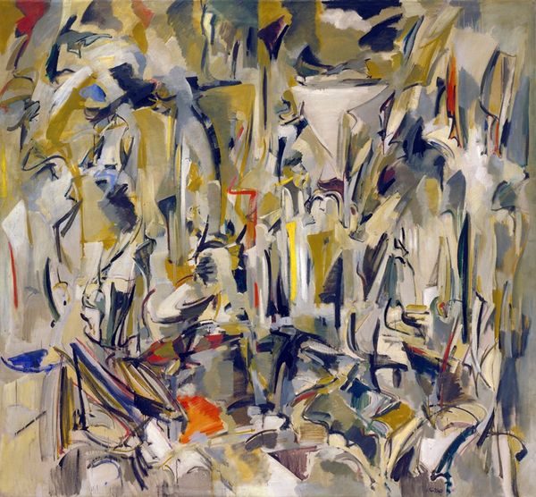 Joan Mitchell created this untitled painting with oil on canvas, sometime during her career. The canvas presents a dynamic interplay of color and form, where strokes of red, yellow, and blue are set against a muted background of grays and browns. Mitchell's composition avoids a central focus, instead encouraging the eye to wander across a landscape of gestural marks. Mitchell's expressive brushwork invites consideration. The textured surface, with its visible layers and energetic lines, embodies a sense of movement and transformation. This approach reflects the influence of Abstract Expressionism, pushing beyond representation to prioritize the act of painting itself. The absence of clear, figurative forms prompts us to reflect on the fundamental elements of painting. Mitchell invites us to consider how colour and texture convey emotional and sensory experiences, destabilizing traditional notions of artistic meaning.