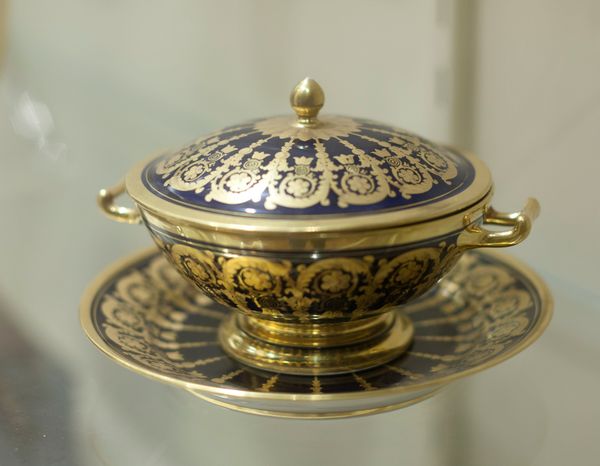 This lidded sugar bowl, its maker now unknown, presents a fascinating tableau of symbols rendered in porcelain. Note the gilded motifs: birds and foliage. These aren't mere decorations; they evoke nature, freedom, and perhaps, a touch of paradise. Consider how similar imagery appears across cultures. The bird, a symbol of the soul, takes flight in Egyptian hieroglyphs and Christian iconography alike. Foliage, often associated with fertility and growth, appears from ancient Roman murals to Renaissance tapestries. But here, they are subtly transformed, tamed for the domestic sphere. The octagon shape of the bowl itself might reflect a desire to reference the classical world, whose architecture and design were rooted in geometric principles. The collective memory of these symbols, passed down through generations, subtly infuses this piece with layers of meaning. It is an emotional and intellectual journey that connects us to the past. The cyclical progression of these symbols is remarkable. They resurface, evolve, and adapt, carrying echoes of earlier meanings while acquiring new ones in each historical context.