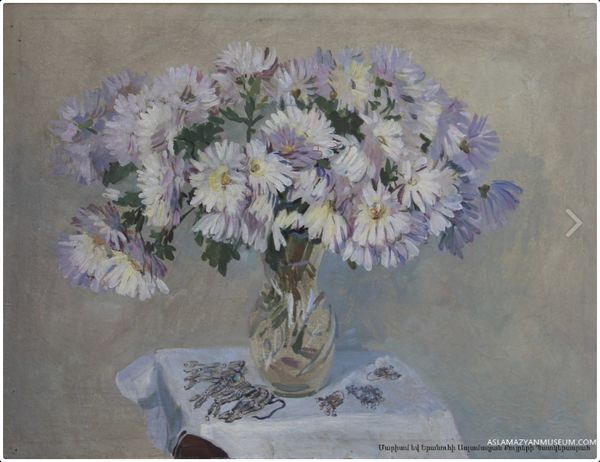George Bouzianis made this painting of flowers, we’re not sure exactly when, but it’s a great example of painting as a process. The colours are muted, earthy, but the brushstrokes are so alive. Look at the way the paint is applied, thick and juicy. It’s almost like he’s sculpting with the paint. You can practically feel the texture of the canvas beneath. And those flowers, they're not just sitting there, they're exploding with energy. I love the dark vase against the lighter background, it really makes the flowers pop. It’s like he’s saying, "Here I am, painting the world as I see it, not as it should be." This piece reminds me a little of Van Gogh, in the way that he used paint to express emotion. But Bouzianis has his own unique voice, his own way of seeing the world. It’s a reminder that art is an ongoing conversation, a way of seeing and thinking.