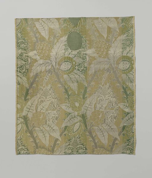 This green floral panel was produced anonymously. Its visual language speaks to the aesthetic values and cultural norms of its time. The symmetrical design and stylized floral motifs reflect a longing for order and beauty. Perhaps this panel was made in the late 19th or early 20th century, when the Arts and Crafts movement flourished in Europe and North America. This was a reaction against industrialization, with an emphasis on handcraftsmanship and natural forms. The piece is a clear departure from Victorian gaudiness. The movement advocated for social reform and believed that art could improve the lives of ordinary people by promoting beauty and craftsmanship in everyday objects. Textiles like this one serve as tangible reminders of the complex interplay between art, society, and the human experience. The historical context can illuminate the meanings and values that have been invested in this piece. By exploring social, economic, and political forces that shaped its creation, we gain a richer understanding of its significance and enduring appeal.