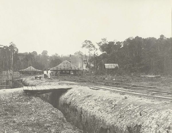 This photograph, "Werk aan een brug over de Wenih Rongka," captured by an anonymous artist, feels like a sketch in grayscale, focusing on form and texture. Look at the way the light plays on the freshly turned earth, creating a symphony of greys and browns. The bridge under construction acts as a focal point, a horizontal line amidst the vertical thrust of the trees. It's the negative space, the sky peeking through the foliage, that grabs my attention. There is something about the dark and light that makes you wonder about the story behind this picture, who these people were, and what happened to the bridge. This photograph shares a kinship with the work of Bernd and Hilla Becher, who meticulously documented industrial structures. Both find a strange beauty in the mundane. Art is about asking questions, not providing answers, and this photograph, in its quiet way, asks plenty.
