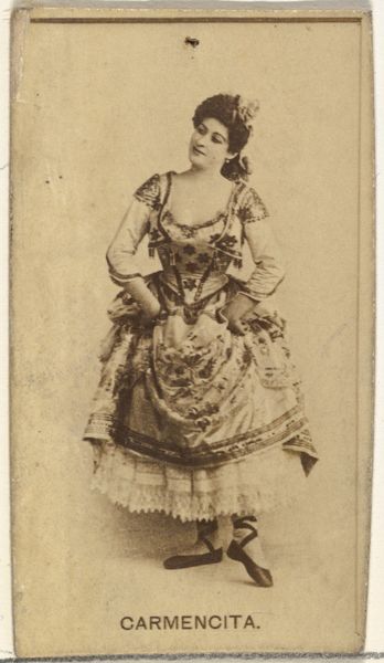 This small card, made by Allen & Ginter for Virginia Brights Cigarettes, presents Mlle. Cicene, an actress of the time. It's printed using photolithography, a process that allowed for mass production of images, effectively democratizing portraiture, though primarily as promotional material. The sepia tone suggests a nostalgic view even at the time of its creation, and the small size made it collectible. The image itself, though seemingly simple, is laden with social context. Actresses were among the first women to achieve a kind of celebrity, and their images helped to sell all sorts of products. The card represents a moment where art, commerce, and celebrity became intertwined. It raises questions about labor, value, and the way images circulate in a consumer society. It also challenges the traditional hierarchy between art and ephemera, inviting us to consider the cultural significance embedded in everyday objects.