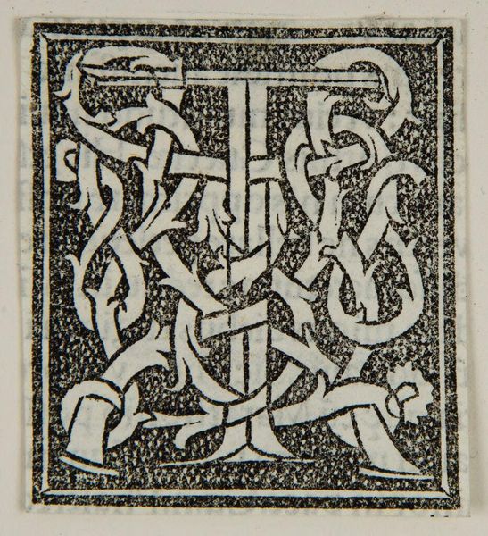 Editor: Here we have the letter E, by an anonymous artist. The black and white contrast is striking! What do you notice about the composition? Curator: The visual field is activated by the stark contrast, indeed, creating a dynamic tension. Note how the 'E' form is both figure and ground. The interwoven floral motifs complicate spatial readings. Is it a letter or an ornament? Editor: So, the ambiguity is key? Curator: Precisely. The artist seems to intentionally disrupt clear categorization, challenging our expectations of form and function. A fascinating exercise in visual semiotics. Editor: I hadn't thought about it that way. It’s more than just a letter; it's a statement about representation. Curator: Exactly. These design elements, in their arrangement, invite us to look deeper.