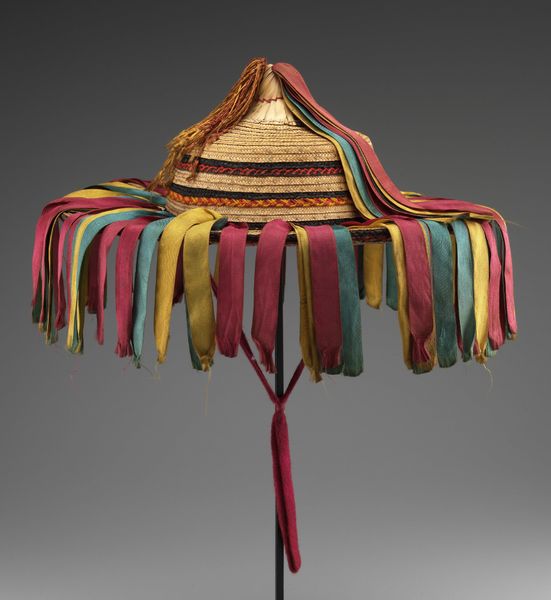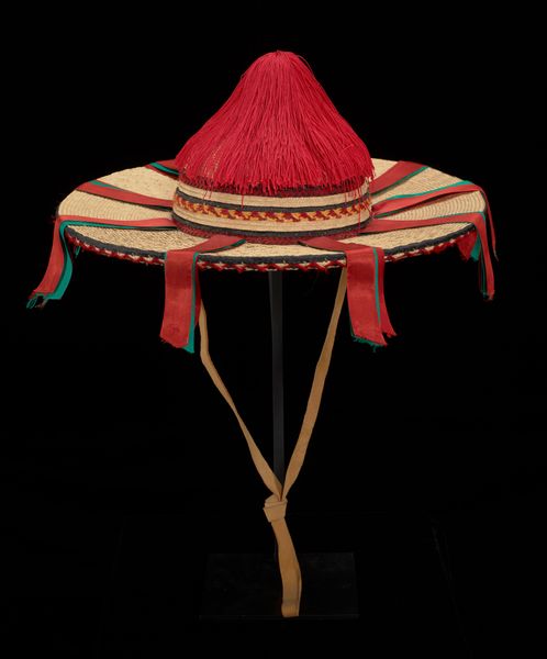 Editor: So, this is a textile "Hat" by the Tuareg people, dating back to the 20th century. It looks ceremonial, almost regal. It definitely gives off a sense of status. What can you tell me about it? Curator: Looking at this "Hat", I immediately consider the complex societal structures of the Tuareg people, where such an object likely signified much more than mere head covering. Considering it was crafted in the 20th century, a period marked by colonial influence and resistance across Africa, we must ask: How did this hat function as a symbol of identity and autonomy within a changing world? Did its ornate design serve to reinforce traditional hierarchies, or perhaps even challenge colonial power structures? Editor: I hadn't thought about it in terms of resistance, but that makes sense. The attention to detail feels like a deliberate statement. Curator: Exactly! And think about who would have worn this. What role did that person play within their community? Consider gender too - who are the craftspeople and who the wearers and what roles did they hold? The textile itself – the materials and the labor – speaks to complex networks of production and exchange. Can we consider this an expression of cultural preservation in the face of outside pressures? Editor: So, it's less about the object itself and more about the stories and the power dynamics it represents? Curator: Precisely! This hat becomes a focal point for understanding broader socio-political realities, allowing us to question dominant narratives and explore marginalized voices. It’s about reclaiming agency through the lens of art history and cultural studies. Editor: That really changes how I see it. It’s not just a hat; it’s a statement. Curator: Yes, art becomes a site for dialogue, revealing deeper understandings of identity, resistance, and cultural negotiation. Hopefully, that understanding will stay with us.