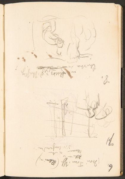 Editor: This is “Studieblad met varkens,” or "Study Sheet with Pigs," by Willem Witsen, made sometime between 1887 and 1891. It's a pencil drawing on paper, and it’s held at the Rijksmuseum. The sketch-like quality makes it seem really informal, almost like peeking into the artist’s private thoughts. What strikes you about this piece? Curator: The apparent randomness is precisely what captivates me. On one level, we see rudimentary arithmetic, maybe Witsen practicing calculations or idly doodling during a tedious task. Juxtapose that with these quickly rendered pig studies. Considering the socio-political context of the late 19th century, when industrialization was rapidly changing agricultural landscapes, how might we interpret this juxtaposition of mundane calculation and rural imagery? Editor: I guess it could be about the tension between the old ways of life and the new, with numbers representing the cold efficiency of industrial progress versus the organic world of farming, represented by the pigs. Do you think Witsen was trying to make some kind of statement? Curator: Perhaps, but I hesitate to ascribe a singular, overt intention. This page might simply be a commonplace book reflecting the artist's observations and concerns. What power dynamic might exist with representing these sketches today in the halls of the museum? Editor: That's a really good question! The sketchbook itself becomes an artifact and almost fetishized, I see. Even these random, perhaps inconsequential scribbles gain a weight and an authority by being on display in the museum. Curator: Exactly. The institutional frame elevates the ordinary. It prompts us to ask: whose stories are preserved and how? Editor: This has been super helpful! Thinking about the institution's role makes me look at art with new eyes! Curator: And that's the most important thing – to keep asking questions.
