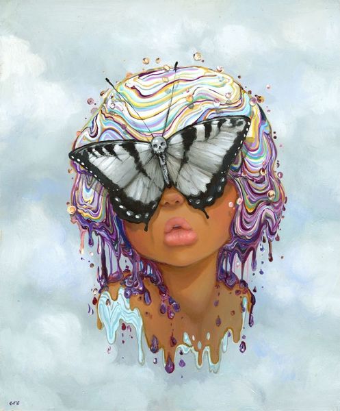 Camilla d’Errico made Mariana’s Tide with paint, and it feels like a peek into a dream. The way the blues bleed into whites makes you feel like you’re underwater, watching the world soften around you. Look closely at how the paint moves, especially where the water meets skin. D’Errico uses these almost stippled touches, little dabs that give the water its airy, foamy feel. And then, the bodies themselves! One filled with the ocean, coral, and fish, a real inner world spilling out. It’s as if our outsides are just containers for the wild landscapes within. This piece reminds me a bit of Remedios Varo, that magical surrealist, in the way it marries the fantastical with a deep sense of introspection. It’s a beautiful reminder that art doesn’t need to shout, sometimes it whispers, inviting us into its quiet, boundless world.