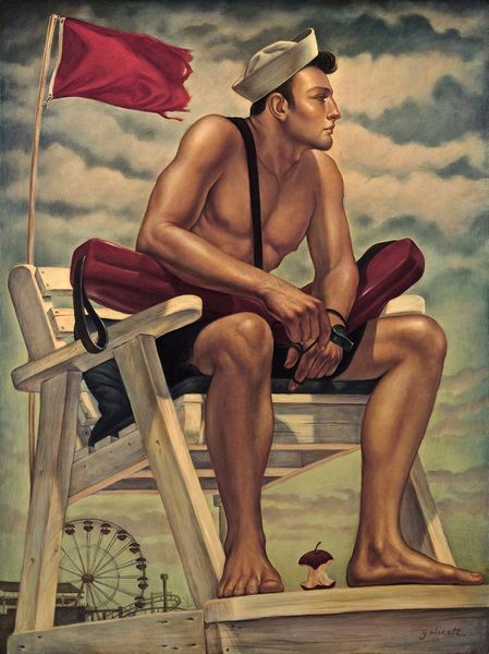 Danny Galieote painted "Riptide" in the 20th century using oils, a traditional medium, but with a contemporary twist. The painting’s smooth surface belies the painstaking layering involved in achieving such detail, especially in the figure’s muscular back and the lifesaver he holds aloft. The choice of oil paint, with its capacity for blending and creating luminous effects, allows Galieote to capture the dreamy, almost surreal quality of the scene. Yet, it's the scene itself that speaks volumes. The lifeguard, a symbol of vigilance, stands against an ethereal sky. But it is the life preserver that connects him to the working class. These are items mass-produced, designed for functionality, and destined for a life of hard service. Their presence elevates the painting beyond mere portraiture, grounding it in the realities of labor, safety, and collective responsibility. Galieote blurs the lines between fine art and the everyday, reminding us that meaning can be found not only in the subject, but also in the materials and the work they represent.