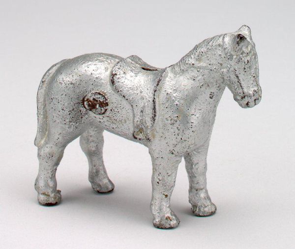 Curator: My goodness, it's precious. Like a little dream taking shape in ivory. Did it actually adorn a sleeve? Imagine the wearer's secrets carried around with such a silent companion! Editor: Indeed, let's delve into this curious creation. What we're observing is a sleeve button, dating from 1873 to 1876. It was produced by Union Porcelain Works and is currently held at the Metropolitan Museum of Art. It appears to be rendered in ivory, though further research would be needed to determine that with certainty. Curator: Oh, an elephant, now I see. Initially, it was such a pure form I thought more about how the craftsman shaped ivory. But now it is clear. Did it come from one of the famed families or from just someone who likes elephants and a clean shirt? Editor: Union Porcelain Works was known for its decorative porcelain. Sleeve buttons would be considered part of that business rather than purely sartorial production. I’m struck by how a mundane object such as a sleeve button becomes a site where artistry, social class, and labor intersect. Curator: It really is a conversation starter, right? It feels playful. Like it knows more than it tells. If that was on my sleeve it would make every interaction magical. Editor: I am drawn to how these objects reflect Victorian society's burgeoning consumer culture, one where the availability of increasingly elaborate ornaments served as visible signifiers of social position and refined taste. And, speaking of playfulness, this also offers a great lens to examine how animal representations took hold of domestic life as markers of nature's dominion. Curator: Oh yes! The domestic taming. Makes this button the crown jewel. I am rethinking this "little nothing," as it can become a potent artifact. Editor: Agreed. From what appeared simple at first, it's remarkable how many complex material, social, and even psychological avenues this miniature piece invites us to consider. It surely underscores the wealth of information often embedded in quotidian, overlooked objects.