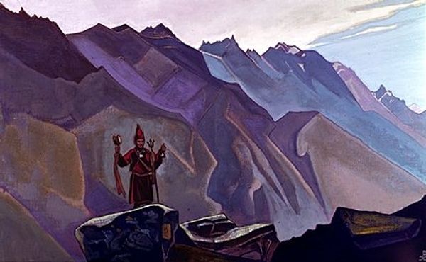 Nicholas Roerich made this painting, Sword of Courage, using tempera on canvas. Here we see an angel holding a sword, standing before what appears to be a mountainous fortress, and in the foreground, two fallen warriors. Roerich's painting reflects his interest in mysticism and spirituality, but this interest was itself shaped by the historical and political context in which he lived. Born in Russia in 1874, Roerich witnessed the social and political upheavals of the early 20th century. He traveled extensively, studying archaeology and immersing himself in the cultures of Asia. His paintings often incorporate themes of heroism, spiritual quest, and the defense of higher values. The image creates meaning through the symbolic use of the angel, the sword, and the fallen warriors, evoking a sense of moral struggle and the protection of spiritual ideals. The historian's role is crucial in understanding this painting. By studying Roerich's life, writings, and the cultural context in which he worked, we can gain insight into the complex meanings embedded in his art. Ultimately, art's significance is deeply intertwined with its social and institutional setting.