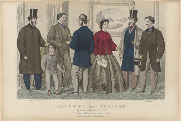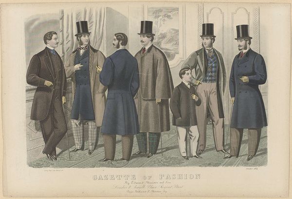 This fashion plate, ‘Gazette of Fashion, August 1865’ was made in London using a printmaking technique. Look closely, and you'll see delicate lines and subtle color gradations achieved through lithography, a process that allows for the reproduction of intricate designs. These garments were the products of skilled labor, from the weaving of the fabric to the tailoring of the clothes. Yet the print is not just about individual craftsmanship. It speaks volumes about the burgeoning fashion industry and the advent of mass production, even at this early date. These magazines helped to disseminate trends to a wide audience, fueling a culture of consumption. Consider the contrast between the bespoke appearance of these clothes and the printmaking process used to create the image. It shows how industrialization and new marketing strategies were changing the way people related to their clothing, and to class itself.