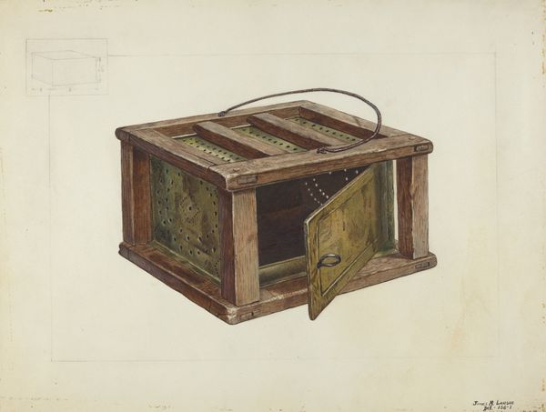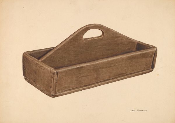 Harvey Beck created this watercolor titled "Butter Molds." The drawing presents two wooden objects, a box and a mold. Beck's technical skill is evident in his precise rendering of the wood grain and the dovetail joints of the box, showcasing his mastery of form and detail. The composition invites us to consider the relationship between utility and artistry. The simple, geometric shape of the box contrasts with the mold's decorative carving of a flower and foliage. The absence of color intensifies our focus on the texture and form, emphasizing the material quality of the wood. Beck seems to explore the semiotics of everyday objects. The box, a container of function, becomes an object of contemplation. The mold, designed to imprint beauty onto butter, challenges our understanding of value and aesthetics in the mundane. In essence, the artist prompts us to consider how meaning is constructed through form, function, and representation.