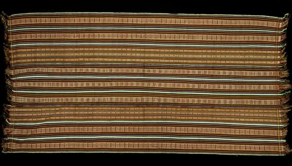 Editor: Here we have an intricately woven shawl, believed to be from the 19th century and created by an anonymous artist. The textile itself is captivating. Its gridded pattern alternates from lighter shades to richer red and black tones. I’m struck by its graphic nature; it feels quite modern. What stands out to you? Curator: It’s fascinating to consider the global movement of textiles and how that movement shaped taste and influenced artistic production in the 19th century. Shawls like this became powerful status symbols. How might the cultural background influence the design elements incorporated in it? Editor: Well, the detailed weaving seems labor-intensive. Would that be related to its value? Curator: Absolutely. Craftsmanship signified exclusivity and aligned with the increasing demand for such artisanal objects during the 19th century. Wealthy consumers began seeking unique, handmade textiles rather than mass-produced items. The visual appeal became associated with economic and social capital. Consider the role that gender also plays here. Were women actively involved in designing, producing, and consuming the shawl? Editor: I hadn't thought about that! It feels inherently domestic, so likely the process involved many women in the trade. Now I am curious about the anonymous creator. The context is essential in understanding an artwork’s cultural significance. Curator: Indeed. Understanding art is like unfolding a social narrative, enriching our view of the past. Editor: Thanks; I'm walking away from it thinking so differently now!