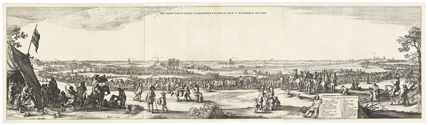 Curator: Here we have "A South-East View of the Great Town of Boston in New England," by John Carwitham. Editor: It feels very…orderly. The composition is so neatly arranged, almost like a stage set. Curator: Indeed, the orderly arrangement speaks to the engraver's intent. Notice the prominence of the ships and their flags. They signify trade, power, and connection to England. Editor: The plumes of smoke might suggest conflict, but the overall effect is still one of established dominion. It's a portrait not just of a town, but of an ideology. Curator: I agree. The aerial perspective and meticulous detail create a sense of control, visually asserting dominance over this new land. Editor: It's fascinating how such seemingly simple imagery can be so layered with cultural meaning.