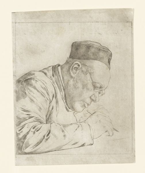 This is Jan Veth's pencil drawing, "Portret van H.J.A.M. Schaepman", now held at the Rijksmuseum. Veth, living from 1864 to 1925, captured his sitter against the backdrop of a rapidly changing world. Schaepman, a prominent Catholic priest and politician in the Netherlands, is portrayed in a moment of contemplation, bent over a writing desk. The artwork evokes questions about the intersection of religious authority and political power during a period marked by social and ideological shifts. How did Schaepman reconcile his religious beliefs with his role in shaping secular policy? Veth’s choice to depict Schaepman in such an intimate, introspective pose provides a window into the personal dimensions of a public figure. It invites us to consider the complexities inherent in navigating personal conviction and public responsibility. Consider how the subtleties of expression reveal the character of a man deeply engaged in the issues of his time.