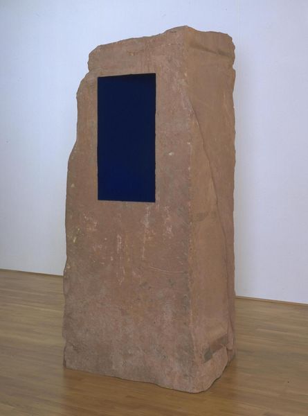 Michael Heizer made this… thing… this Negative Megalith #5, sometime, using a big ol’ rock and a smaller, black box. It's all about this sense of scale, right? The stone is… stone-colored, naturally. But the way it sits in this slick, black-lined niche is so, so strange. The texture of the stone, all rough and crumbly, jammed into this super precise, modern, architectural surround. It’s almost like looking at a painting, but the painting is real. It isn't pigment, it's geology. There's this one divot, up near the top of the rock. It catches the light just so, makes you wonder about all the things this rock has seen, the stories it could tell if it could talk. Heizer makes work on a huge scale, out in the desert, and there's something about this piece that feels like a concentrated dose of all that. It’s pure matter, presented as art, just rock and space and the idea that maybe art doesn't always have to be made, but found. Like a Duchamp ready-made, but one that took millions of years to make itself.