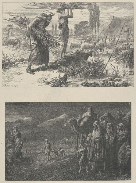 This print, titled "Ambachten en Bedrijven," depicts various trades, offering a glimpse into the labor of the past. Consider the axe being used in the top-left panel, it represents a fundamental tool of civilization. The axe is a potent symbol found throughout human history. In ancient mythologies, it's associated with gods like Thor, embodying power and the ability to shape the world. But, beyond mere functionality, the wielding of an axe, the felling of a tree, speaks to humankind's enduring drive to transform nature. This act of creation, and, simultaneously, destruction, taps into our collective memory, evoking the primal, often subconscious, conflict between humanity and the natural world. From the forests of antiquity to modern industry, this struggle echoes through time, manifesting in art as a symbol of progress and a reminder of our complex relationship with the environment.