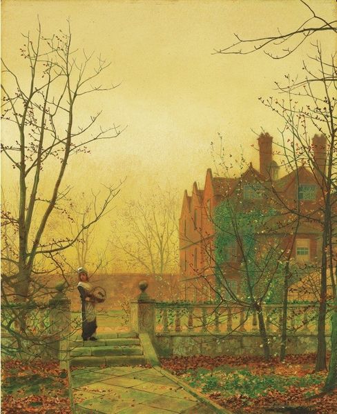 John Atkinson Grimshaw painted this evocative landscape, Autumn Morning, without providing a specific date. The canvas is dominated by a soft, diffused light that bathes the scene in a warm, golden hue, creating an almost dreamlike atmosphere. Grimshaw’s composition uses the gate and path to draw us into the painting, towards the grand house shrouded in mist. The skeletal trees, with their intricate network of branches, form a screen that both reveals and conceals. This interplay of light and shadow, coupled with the muted palette, evokes a sense of melancholic beauty. The painting plays with the idea of visibility and concealment. The grand house, a symbol of stability and permanence, is partially obscured, challenging traditional notions of clarity and direct representation. Grimshaw invites us to contemplate the transient nature of autumn and the subtle shifts in perception that come with changing light and atmosphere. This exploration is not just aesthetic, but also touches on broader philosophical ideas about time, memory, and the elusive nature of reality.