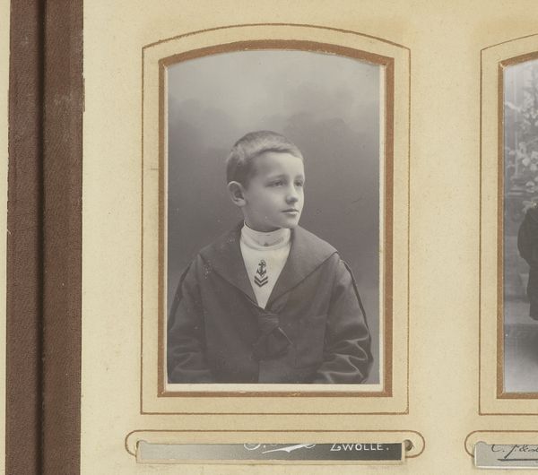 Editor: This gelatin silver print, “Portret van een jongen met bril”, or “Portrait of a boy with glasses” by Jacques Chits, seems like a candid glimpse into the late 19th century. The boy's gaze feels so direct, almost piercing. What catches your eye about this piece? Curator: Ah, isn’t it enchanting? It pulls you in, doesn't it? To me, this isn't just a photograph, it's a tiny time capsule. Imagine the sitter—what was on his mind as he sat there? What dreams was he incubating, all swaddled up tight within the confines of childhood and expectation? You almost wonder if the very act of being photographed instilled the gravity. Don't you think he seems old beyond his years? Editor: Absolutely. He looks so serious. But also a bit…vulnerable, perhaps? Was portrait photography common then? Curator: Precisely. Photography democratized portraiture. No longer was having your likeness rendered a privilege of the aristocracy. Photography let those further down the ladder climb towards visibility, in turn shaping our collective historical gaze. Have you noticed the subtle imperfections, almost like wisps of a memory surfacing? These weren't erased but accepted, offering a tactile immediacy that feels very contemporary to my eye, do you feel the same? Editor: I hadn't thought about it like that, but I see what you mean. The imperfections give it so much character. Curator: That very visible, almost palpable link to the past is like time dust swirling. Each viewing unearths another layer of history. And it subtly reminds us we were all awkward kids once, standing at that precipice on the border between then and now. Editor: I’ll never look at old photographs the same way. Thank you! Curator: The pleasure was all mine! Isn't it magnificent how one image can unravel such a complex tapestry of thought and emotion?
