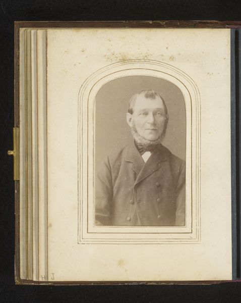 J. Siewers & Zoon captured this portrait of a man with a ring beard using photography, a medium that democratized portraiture. Photography in this period was increasingly accessible, yet still imbued with the formality of painted portraits, often serving as a powerful tool for constructing and conveying social identity. The sitter's stern gaze and neatly groomed beard speak to a desire for respectability and perhaps, a certain social standing. Consider the cultural norms of the time; in many Western societies, beards were associated with masculinity, wisdom, and authority. However, the rigidity of the pose might also hint at the constraints placed upon individuals by societal expectations, particularly around gender and class. What does it mean to perform 'manhood' through carefully curated visual cues? How might this image reflect both personal identity and broader cultural narratives? This portrait invites us to reflect on the complex interplay between individual agency and social expectations.